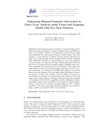 | Title: | Enhancing Human-Computer Interaction in Chest X-Ray Analysis Using Vision and Language Model with Eye Gaze Patterns |