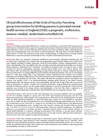 | Title: | Clinical effectiveness of the Circle of Security-Parenting group intervention for birthing parents in perinatal mental health services in England (COSI): a pragmatic, multicentre, assessor-masked, randomised controlled trial |