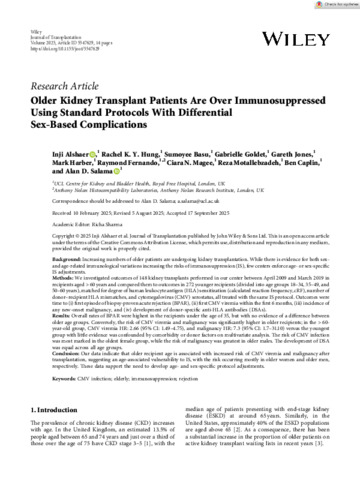 Salama_Journal of Transplantation - 2025 - Alshaer - Older Kidney Transplant Patients Are Over Immunosuppressed Using Standard.pdf Download (653kB) | Preview |