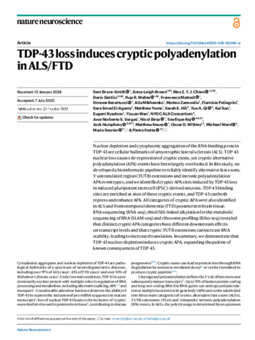 TDP-43 loss induces cryptic polyadenylation in ALS/FTD.
