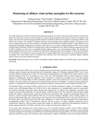 | Keywords: | Guided ultrasonic waves, offshore wind turbine, fatigue reliability analysis, renewable energy, structural health monitoring |