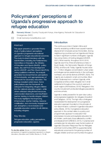 | Title: | Policymakers' perceptions of Uganda's progressive approach to refugee education |
