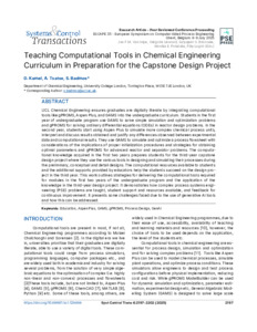 | Title: | Teaching Computational Tools in Chemical Engineering Curriculum in Preparation for the Capstone Design Project |