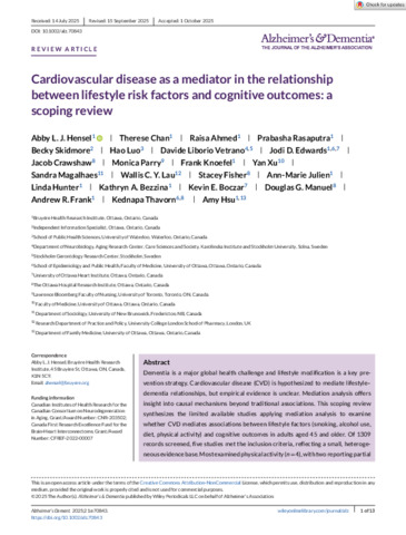Alzheimer s Dementia - 2025 - Hensel - Cardiovascular disease as a mediator in the relationship between lifestyle risk.pdf - Published Version Download (642kB) | Preview |