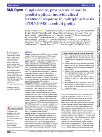 | Title: | Single-centre, prospective cohort to predict optimal individualised treatment response in multiple sclerosis (POINT-MS): a cohort profile |
