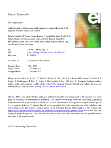 | Title: | Artificial outdoor light at night and depression in older adults in the USA, England, Northern Ireland, and Ireland |