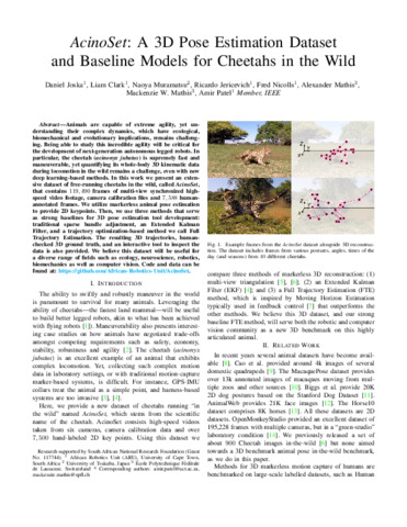 | Title: | AcinoSet: A 3D Pose Estimation Dataset and Baseline Models for Cheetahs in the Wild |