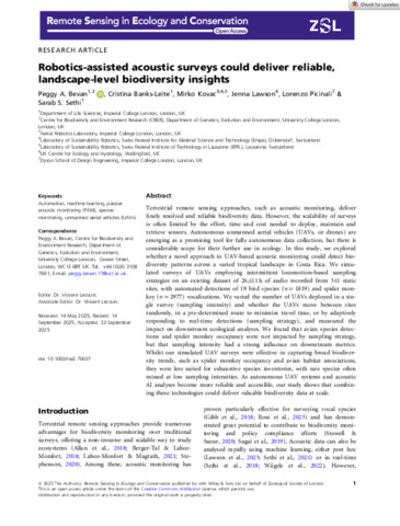 | Title: | Robotics-assisted acoustic surveys could deliver reliable, landscape-level biodiversity insights |