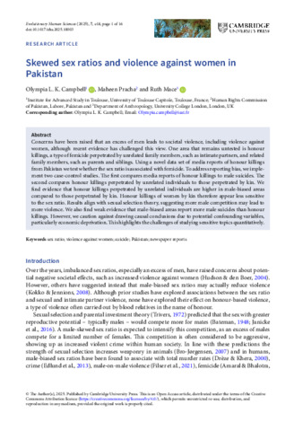 | Title: | Skewed sex ratios and violence against women in Pakistan |