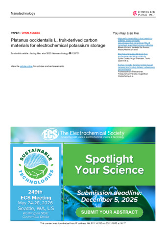 | Title: | Platanus occidentalis L. fruit-derived carbon materials for electrochemical potassium storage |