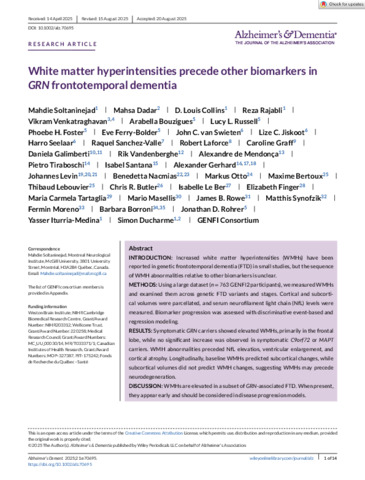 | Title: | White matter hyperintensities precede other biomarkers in GRN frontotemporal dementia |