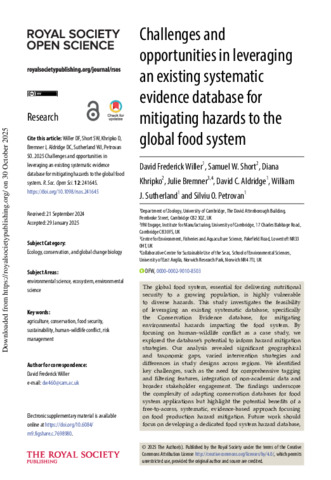 | Title: | Challenges and opportunities in leveraging an existing systematic evidence database for mitigating hazards to the global food system |