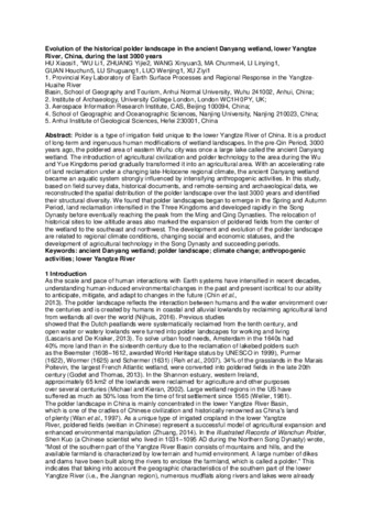 | Title: | Evolution of the historical polder landscape in the ancient Danyang wetland, lower Yangtze River, China, during the last 3000 years |