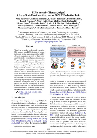 | Title: | LLMs instead of Human Judges? A Large Scale Empirical Study across 20 NLP Evaluation Tasks |