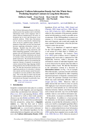 Surprise! Uniform Information Density Isn’t the Whole Story: Predicting Surprisal Contours in Long-form Discourse.