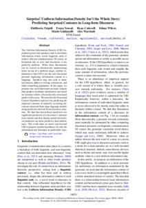 | Title: | Surprise! Uniform Information Density Isn’t the Whole Story: Predicting Surprisal Contours in Long-form Discourse |