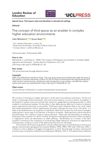 | Title: | The concept of third space as an enabler in complex higher education environments |