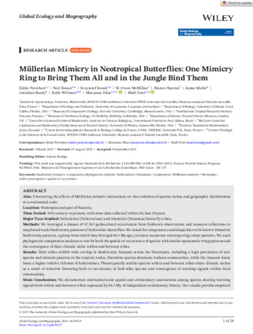 | Title: | Müllerian Mimicry in Neotropical Butterflies: One Mimicry Ring to Bring Them All and in the Jungle Bind Them |