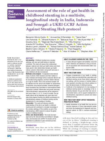 | Title: | Assessment of the role of gut health in childhood stunting in a multisite, longitudinal study in India, Indonesia and Senegal: a UKRI GCRF Action Against Stunting Hub protocol |