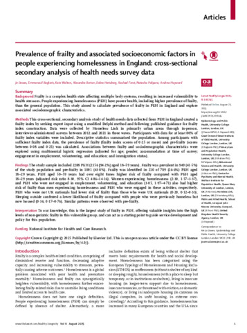 Prevalence of frailty and associated socioeconomic factors in people experiencing homelessness in England: cross-sectional secondary analysis of health needs survey data.