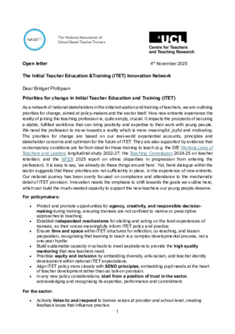 | Title: | Priorities for change in Initial Teacher Education and Training (ITET) |