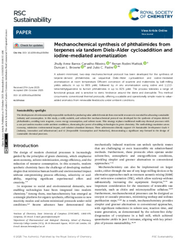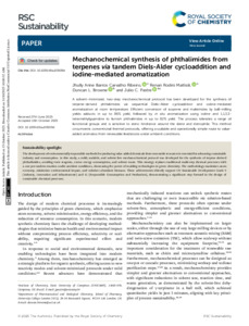 | Title: | Mechanochemical synthesis of phthalimides from terpenes via tandem Diels-Alder cycloaddition and iodine-mediated aromatization |