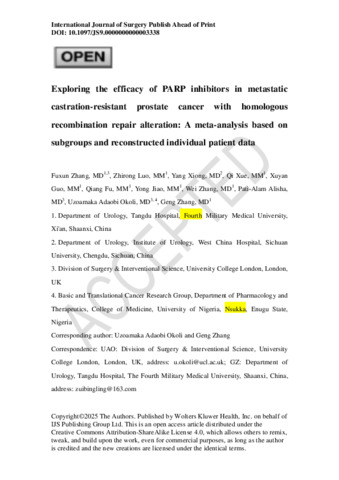 | Title: | Exploring the efficacy of PARP inhibitors in metastatic castration-resistant prostate cancer with homologous recombination repair alteration: a meta-analysis based on subgroups and reconstructed individual patient data |