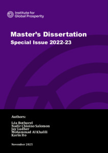 The 2022-23 ‘IGP Master’s Dissertation Special Issue’ is a celebration of the exceptional intellectual achievement of ten distinguished students from the Master of Global Prosperity (MSc GP) and Master of Prosperity, Innovation and Entrepreneurship (MSc PIE) programs at the Institute for Global Prosperity (IGP), UCL. This special issue is a testament to their academic excellence, showcasing a diverse array of research that pushes the boundaries of our understanding of prosperity. The five dissertations, selected for their outstanding quality, innovative approaches, and insightful contributions, serve as a beacon of inspiration for future students and a resource for further research in the field of global prosperity. However, this special issue represents only a fraction of the innovative and forward-thinking ideas that have been cultivated among the students at the IGP. • Bothorel’s dissertation examines deliberative democracy through the case of the Permanent Citizen Dialogue in Belgium’s German-speaking community. By assessing this institutionalised citizen assembly through the perspectives of its contributors, it evaluates how such initiatives can address democratic deficits, rising populism, and declining trust in traditional democratic systems. • Salomon’s dissertation explores place-based wellbeing in urban green spaces and its role in supporting healthy ageing. Drawing on interviews and go-alongs with elderly volunteers at Queen Elizabeth Olympic Park, it suggests how social engagement, health, and volunteering intersect to create a framework of wellbeing that combats isolation and promotes quality of life for older adults. • Ludher’s dissertation examines the potential of wave and tidal energy in Australia’s renewable mix, assessing their viability against existing energy sources. While technological immaturity limits their current competitiveness, the study highlights their potential to deliver stable electricity with further development, policy support, and investment. • Al Khalili’s dissertation investigates how transformative entrepreneurship and conflict transformation can address the conflict–poverty trap in Syria, focusing on Afrin. Drawing on cases from Rwanda, Kenya, and Bangladesh, it develops the ‘power of transformation’ model, integrating social microcredit and moral imagination to foster trust, cooperation, and economic value. • Ito’s dissertation explores how integrating the Ikigai Model with the Job Demands– Resources (JD-R) theory can enhance cross-cultural diversity management in Japanese companies. Using a leading Japanese airline as a case study, the research identifies barriers to inclusion and highlights the role of ikigai in fostering employee well-being and engagement. Together, these dissertations present innovative research that informs policies and practices aimed at fostering inclusive, prosperous, and empowered communities. They emphasise the importance of environmental, educational, and economic interventions in shaping a society’s trajectory toward sustainability, resilience, and prosperity.