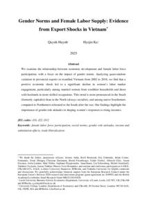 | Title: | Gender Norms and Female Labor Supply: Evidence from Export Shocks in Vietnam |