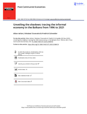 | Title: | Unveiling the shadows: tracing the informal economy in the Balkans from 1996 to 2021 |