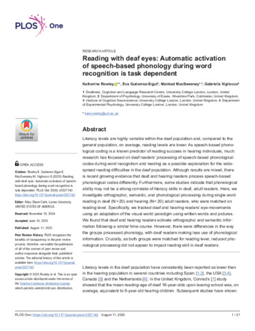 Reading with deaf eyes: Automatic activation of speech-based phonology during word recognition is task dependent.