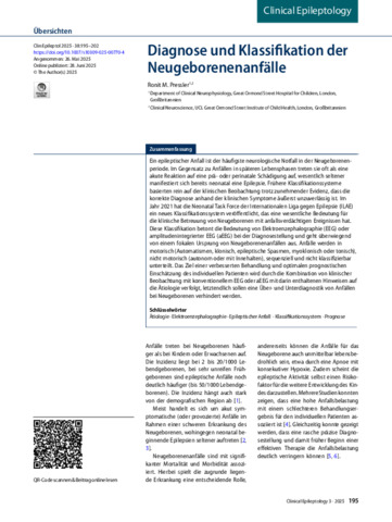 Epileptic seizures are the most frequent neurological emergency in the neonatal period. In contrast to seizures in older children and adults they are mostly acute symptomatic seizures as a response to a prenatal or perinatal acute brain injury; less commonly epilepsy is already manifested in the neonatal period. Previous classifications systems were purely based on the clinical observation of behavior despite increasing evidence that the correct diagnosis based on the clinical symptoms is extremely unreliable. In 2021 the Neonatal Task Force of the International League against Epilepsy (ILAE) published a new classification system for neonatal seizures with implications for the clinical management of neonates with presumed or at risk of seizures. This classification emphasizes the importance of electroencephalography (EEG) or amplitude-integrated EEG (aEEG) in making the diagnosis and presumes a predominantly local onset of seizures in the neonatal period. Seizures are classified into motor (automatisms, clonic, epileptic spasms, myoclonic or tonic), nonmotor (autonomic or behavioral arrest), sequential or unclassifiable. Combining clinical observation with EEG or aEEG can help to determine the etiology and ultimately avoid overdiagnosis and underdiagnosis of neonatal seizures with the overall aim to improve the treatment and prognosis of seizures in neonates.