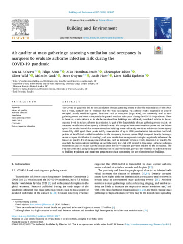 | Title: | Air quality at mass gatherings: assessing ventilation and occupancy in marquees to evaluate airborne infection risk during the COVID-19 pandemic |