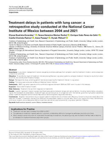 Treatment delays in patients with lung cancer a retrospective study conducted at the National Cancer Institute of Mexico bet.pdf - Published Version Download (915kB) | Preview |