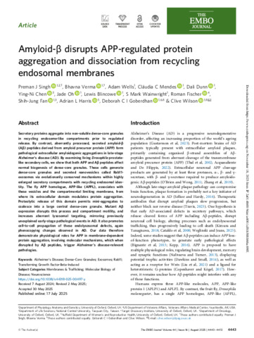 | Title: | Amyloid-β disrupts APP-regulated protein aggregation and dissociation from recycling endosomal membranes |