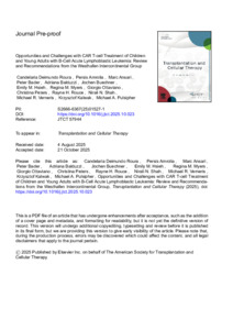 | Title: | Opportunities and Challenges with CAR T-cell Treatment of Children and Young Adults with B-Cell Acute Lymphoblastic Leukemia: Review and Recommendations from the Westhafen Intercontinental Group |