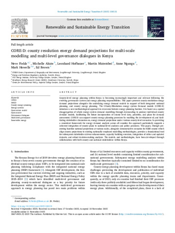 | Title: | CORE-D: county resolution energy demand projections for multi-scale modelling and multi-level governance dialogues in Kenya |
