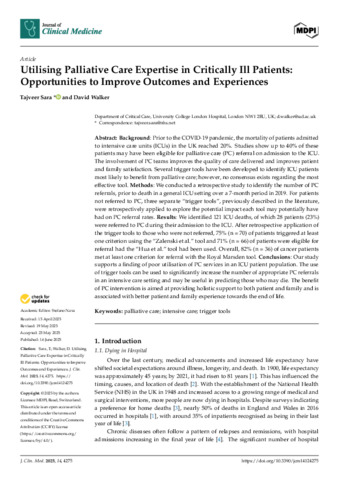 | Title: | Utilising Palliative Care Expertise in Critically Ill Patients: Opportunities to Improve Outcomes and Experiences |