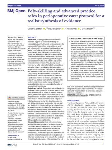 | Title: | Poly-skilling and advanced practice roles in perioperative care: protocol for a realist synthesis of evidence |