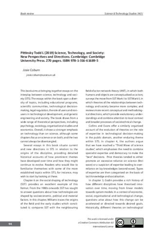 Pittinsky Todd L (2019) Science, Technology, and Society: New Perspectives and Directions. Cambridge: Cambridge University Press. 270pages. ISBN 978-1-316-61689-5.