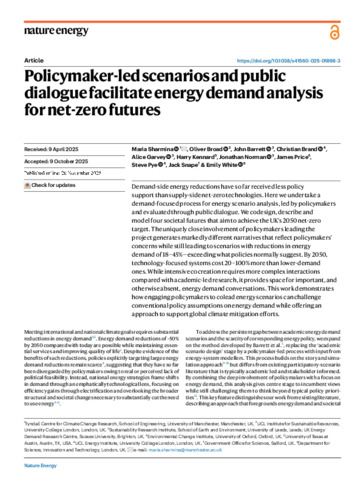 | Title: | Policymaker-led scenarios and public dialogue facilitate energy demand analysis for net-zero futures |