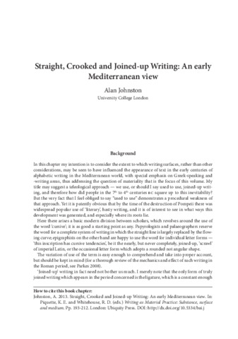| Title: | Straight, Crooked and Joined-up Writing: An early Mediterranean view |