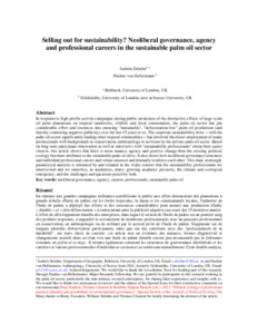 | Title: | Selling out for sustainability? Neoliberal governance, agency and professional careers in the sustainable palm oil sector |
