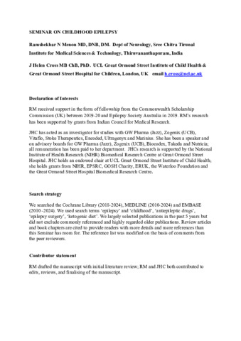 Epilepsies that present during childhood pose unique challenges and include developmental and epileptic encephalopathies, specific distinctive constellations, and epilepsies with seizure subtypes, such as epileptic spasms, myoclonic-atonic seizures, and myoclonic absences. Self-limited focal epilepsies and genetic generalised epilepsy phenotypes are also evident during childhood. However, determining the cause—whether structural, genetic, metabolic, infectious, or autoimmune—is increasingly relevant. Although history and clinical examination form the fundamental basis of diagnosis, exclusion of epilepsy mimics in childhood can prove challenging, requiring specialist input and supportive electrophysiology. With crucial evidence-based medicine emerging on the treatment of infantile epileptic spasm syndrome, Dravet syndrome, and Lennox–Gastaut syndrome, with a focus on improving outcomes, early identification of surgically remediable epilepsies is crucial for neurodevelopmental outcomes. Practical questions remain regarding pathophysiology, the effects of causative factors and interictal epileptiform activity on cognition, and the efficacy of precision medicine-based approaches based on insights from epilepsy genetics.