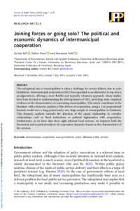 | Title: | Joining forces or going solo? The political and economic dynamics of intermunicipal cooperation |
