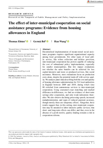 | Title: | The effect of inter-municipal cooperation on social assistance programs: Evidence from housing allowances in England |