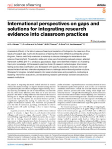 Despite a high level of interest and investment in “gold standard” evaluations of interventions in education, the gap between teaching practice and the latest research on learning appears wider than ever; likewise, persistent attainment gaps between certain groups remain. This report summarizes the presentations and discussion from a roundtable event that brought together representatives from educational practice, research, and policy to explore challenges and solutions in relation to establishing “what works” in different educational contexts. The commentary addresses issues surrounding (a) who is involved and when, (b) a need for methodological innovation, (c) communication, and (d) understanding and use of evidence by educators and policymakers. Suggestions for best practice in relation to addressing these issues using national and international examples are presented. Identified recommendations related to facilitating a research culture within the teaching profession, the promotion of data sharing and communication, and conducting realistic evaluations. Outstanding questions are highlighted.