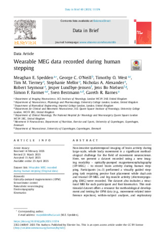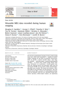 Non-invasive spatiotemporal imaging of brain activity during large-scale, whole body movement is a significant methodological challenge for the field of movement neuroscience. Here, we present a dataset recorded using a new imaging modality – optically-pumped magnetoencephalography (OP-MEG) – to record brain activity during human stepping. Participants (n=3) performed a visually guided stepping task requiring precise foot placement while dual-axis and triaxial OP-MEG and leg muscle activity (electromyography, EMG) were recorded. The dataset also includes a structural MRI for each participant and foot kinematics. This multimodal dataset offers a resource for methodological development and testing for OPM data (e.g., movement-related interference rejection), within-subject analyses, and exploratory analyses to generate hypotheses for further work on the neural control of human stepping.