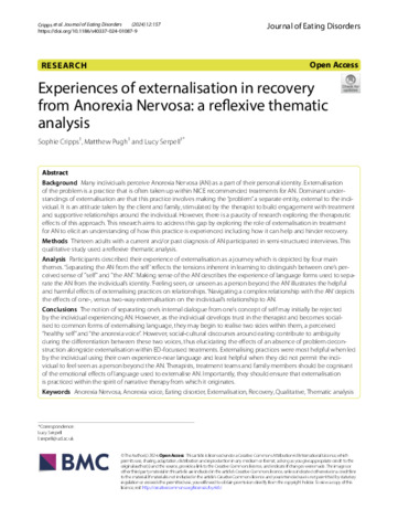 Experiences of externalisation in recovery from Anorexia Nervosa a reflexive thematic analysis.pdf - Published Version Download (1MB) | Preview |