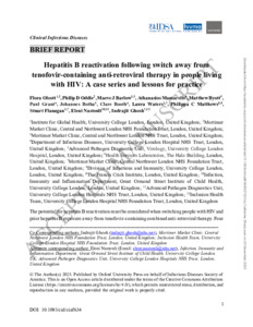 Hepatitis B reactivation following switch away from tenofovir-containing anti-retroviral therapy in people living with HIV: A case series and lessons for practice.